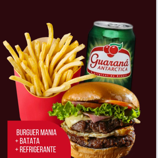 burguer mania , batata frita ,guarana lata