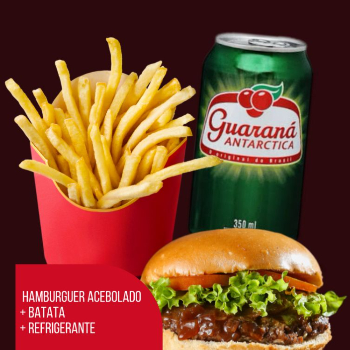 hamburguer acebolado , batata frita , guarana lata
