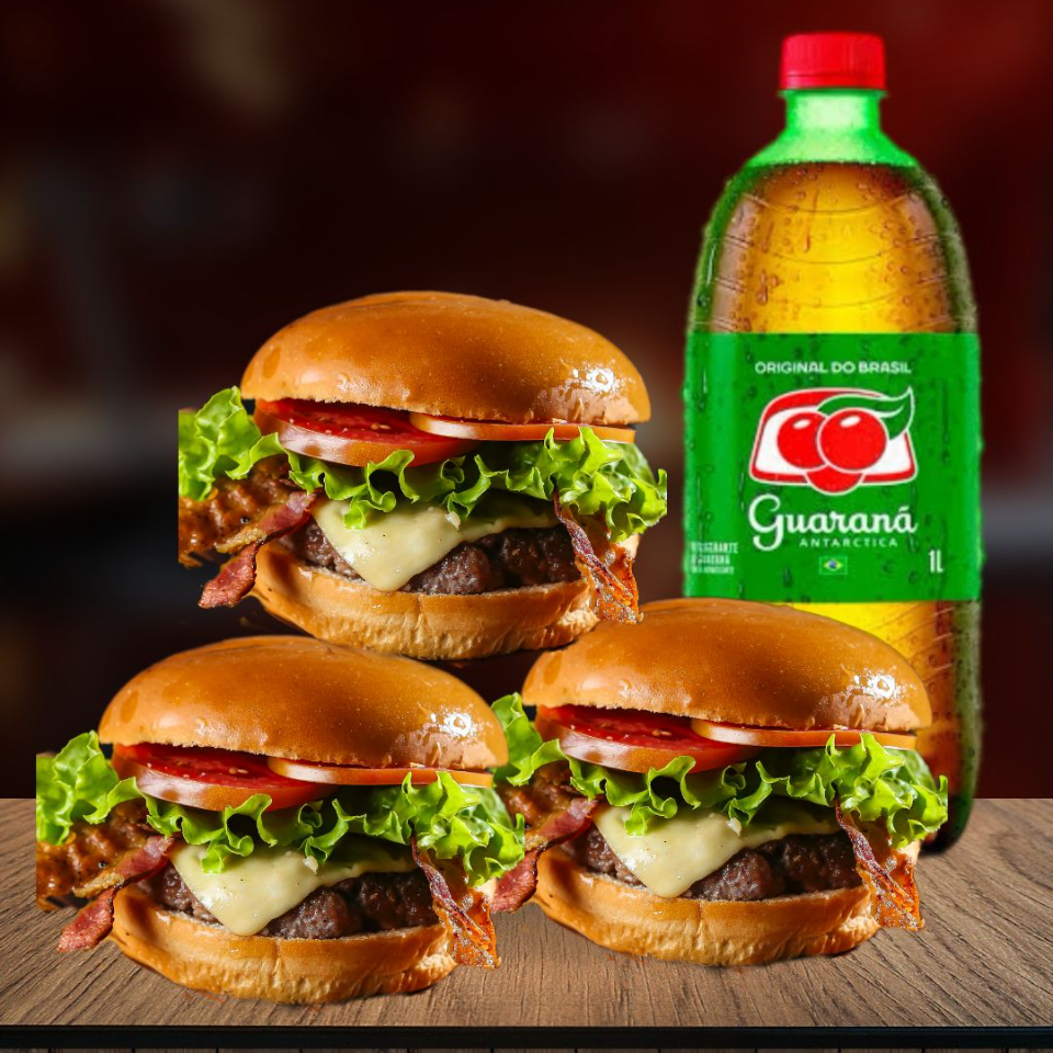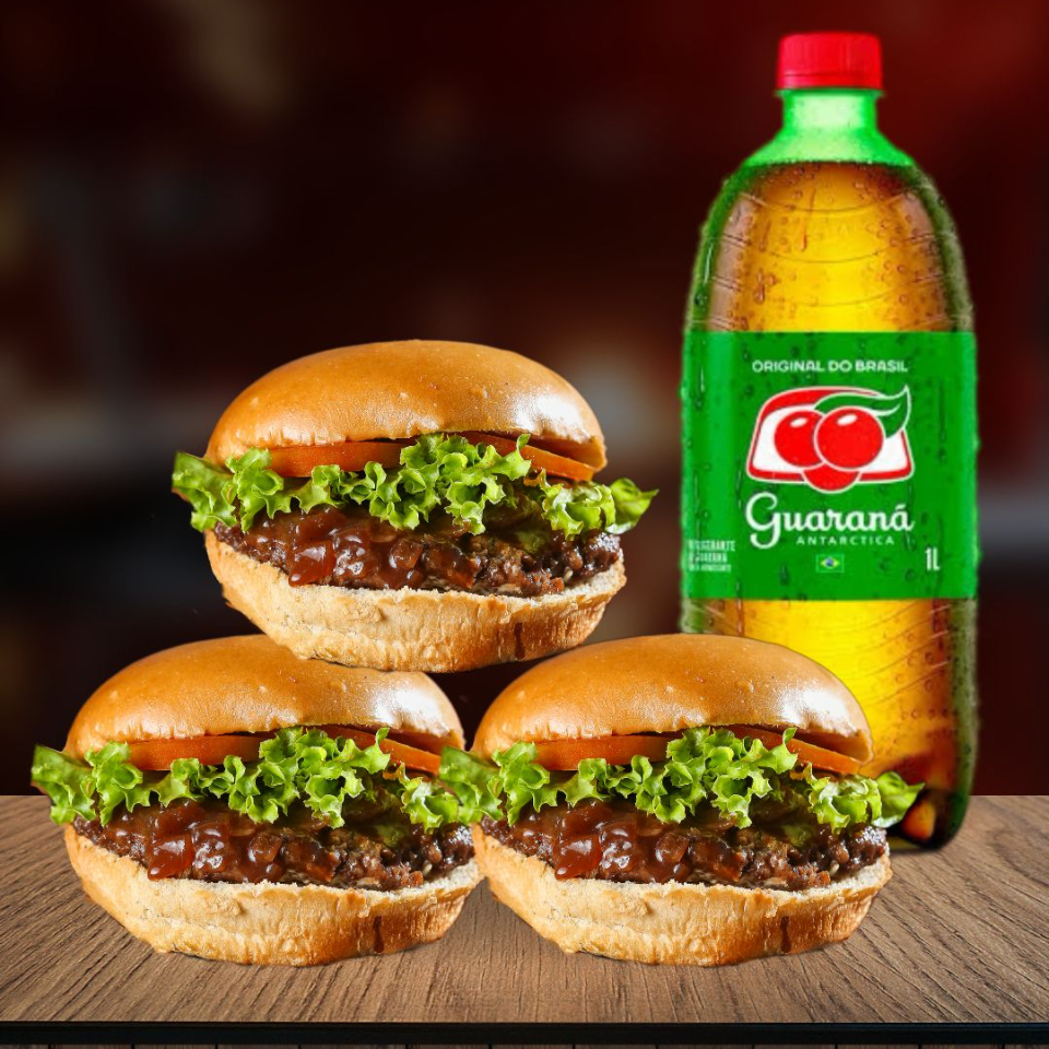 3 Hamburgueres Acebolados + Guarana 1 Litro