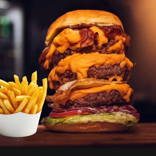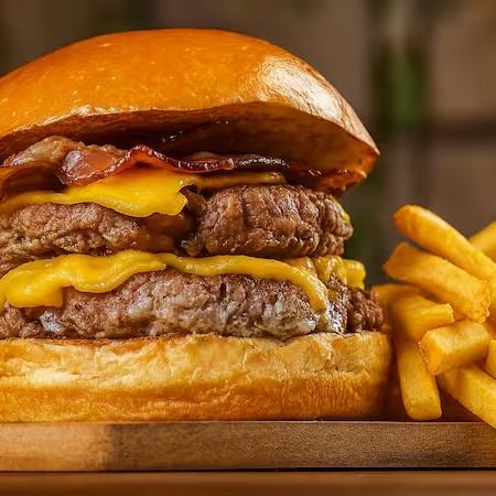 Pão Brioche fofinho, cheddar cremoso,3 Carnes smashs 60g,molho da casa que todo mundo ama e bacon crocante.