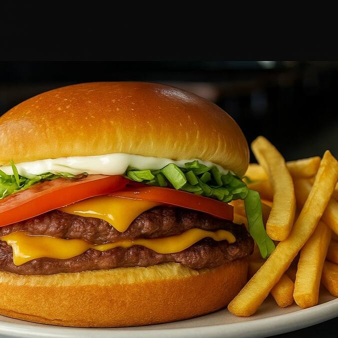 Nosso incrível hambúrguer: Pão brioche com gergelim misto selado na manteiga, burger blend angus 80g (In natura), um legítimo american cheese artenasal . Acompanha pequena porção de batata frita premium.