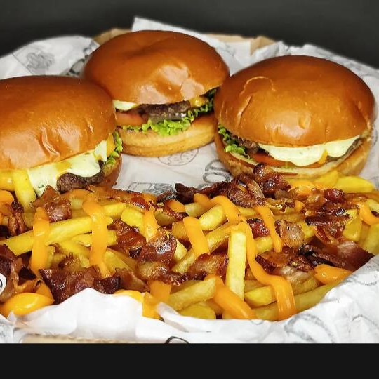 “3 Burguer's artesanais suculentos + batata frita turbinada com cheddar cremoso, bacon crocante.. Combo perfeito pra dividir (ou não ).