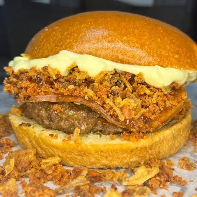 Pão , blend 120gr , Catupiry empanado , bacon , cebola crispy , molho.