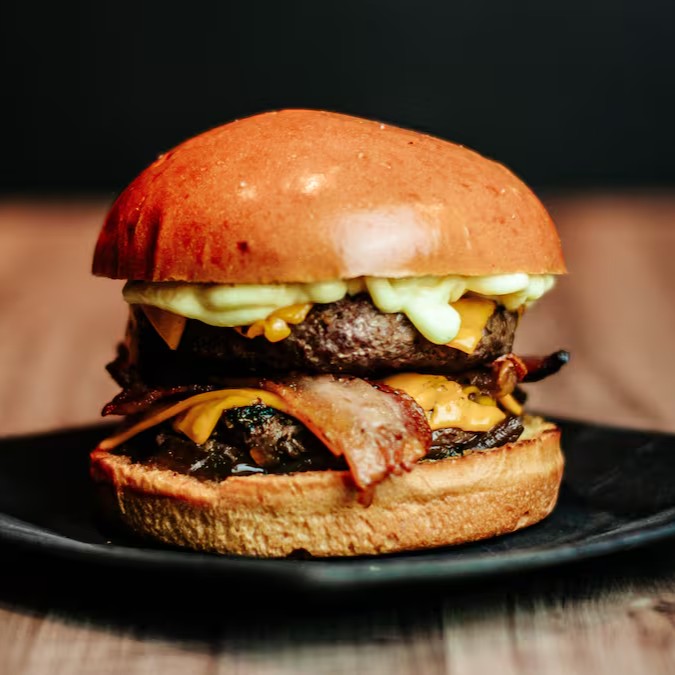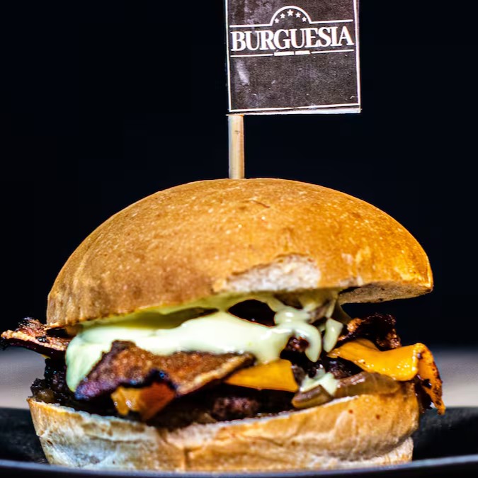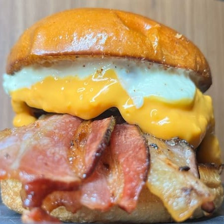 Pão brioche macio , blend 120gr , queijo provolone chapeado , bacon , doce de leite .