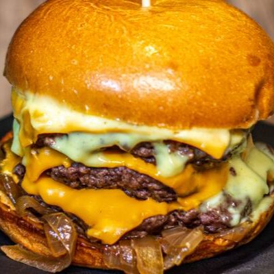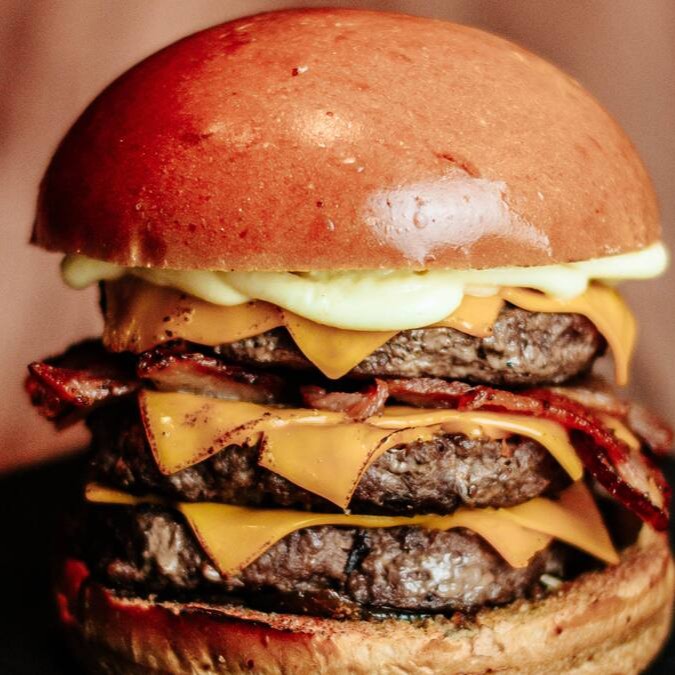 Pão, 3 Carnes De 90gr , 3 Fatias De Queijo Cheddar Fatiado, Cebola Caramelizada E Molho Da Casa (Maionese Caseira).