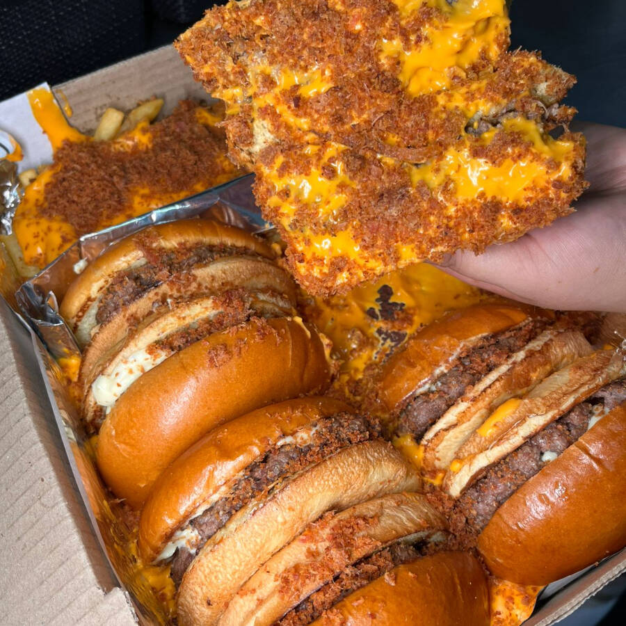 Esse é aquele combo perfeito para os amantes de creme de cheddar.No box vai : 1 double cheddar (Pão brioche , 2 blends 90gr , creme de cheddar , cebola caramelizada ) , 3 smash cheddar (Pão , 1 blend 90gr , creme de cheddar , cebola caramelizada ) , 1 batata com cheddar .