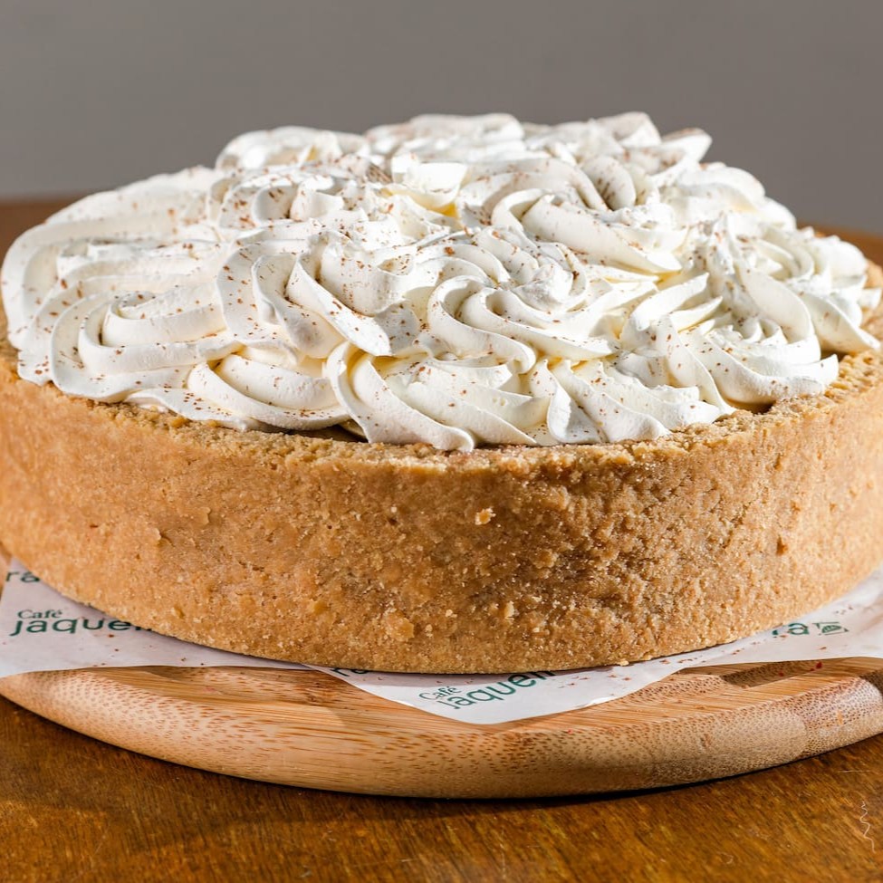 Torta de massa de biscoito recheada com chocolate, doce de leite, banana e coberto com chantilly.