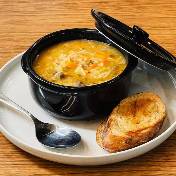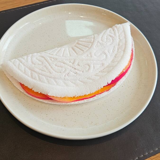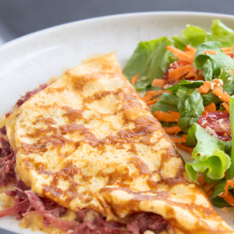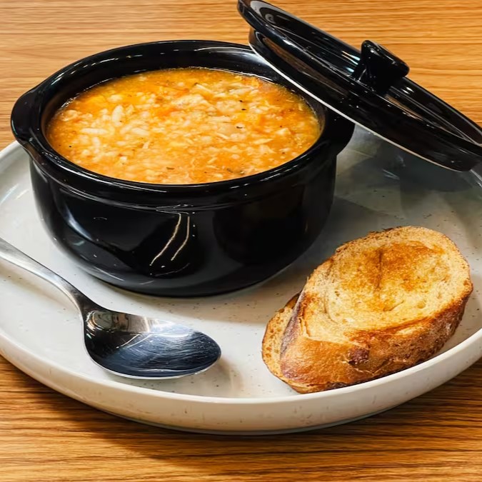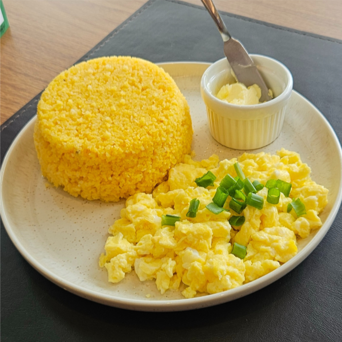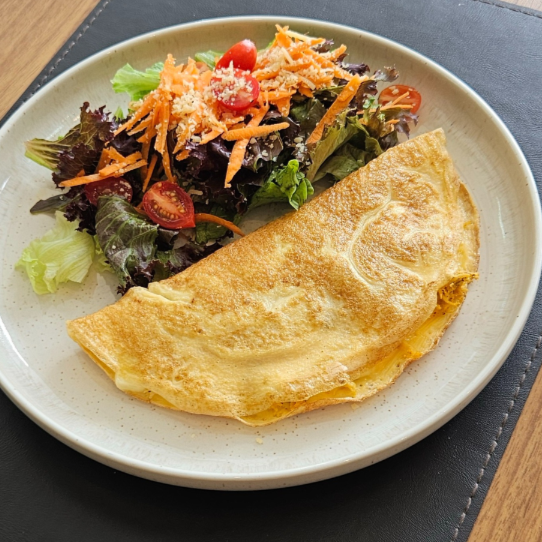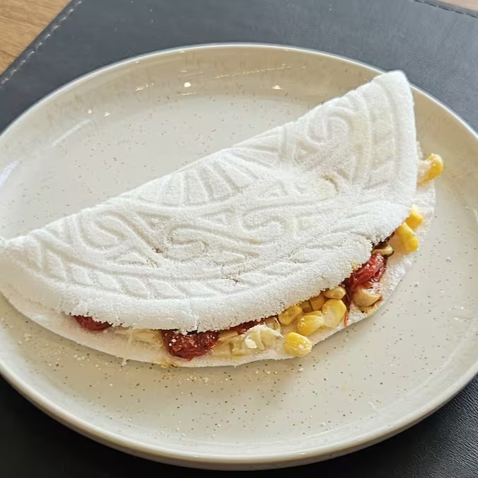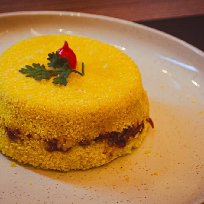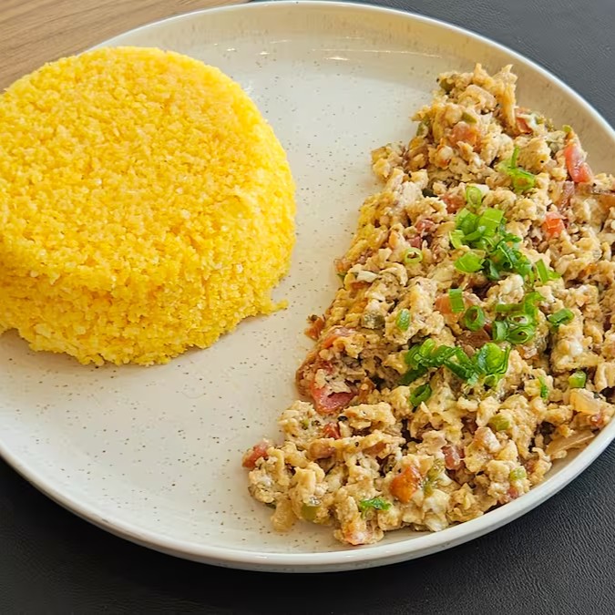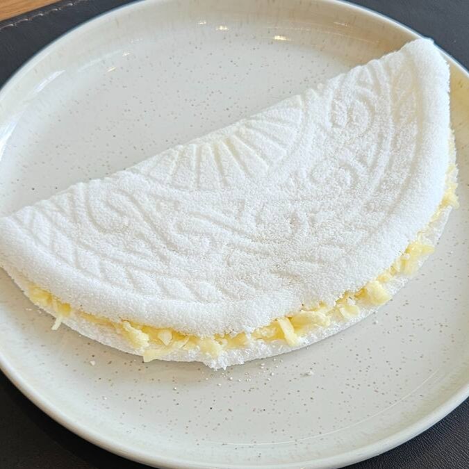 Fatia de Pão artesano recheada com Ovo cremoso e coberto com queijo mussarela gratinado com um toque de oregano. Por cima ainda vai um tomate confit que acrescenta ainda mais sabor.