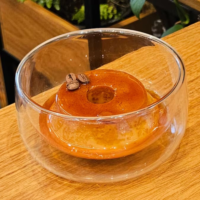 Pudim de leite condensado com caramelo feito a base de cold brew