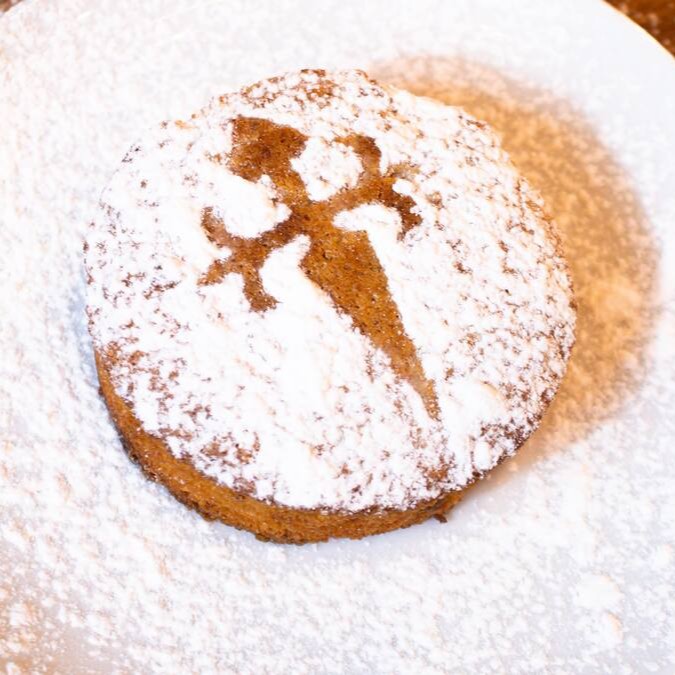 Torta tradicional e histórica da galícia, na espanha, servida aos peregrinos que fazem o caminho de santiago de compostela. Sua r