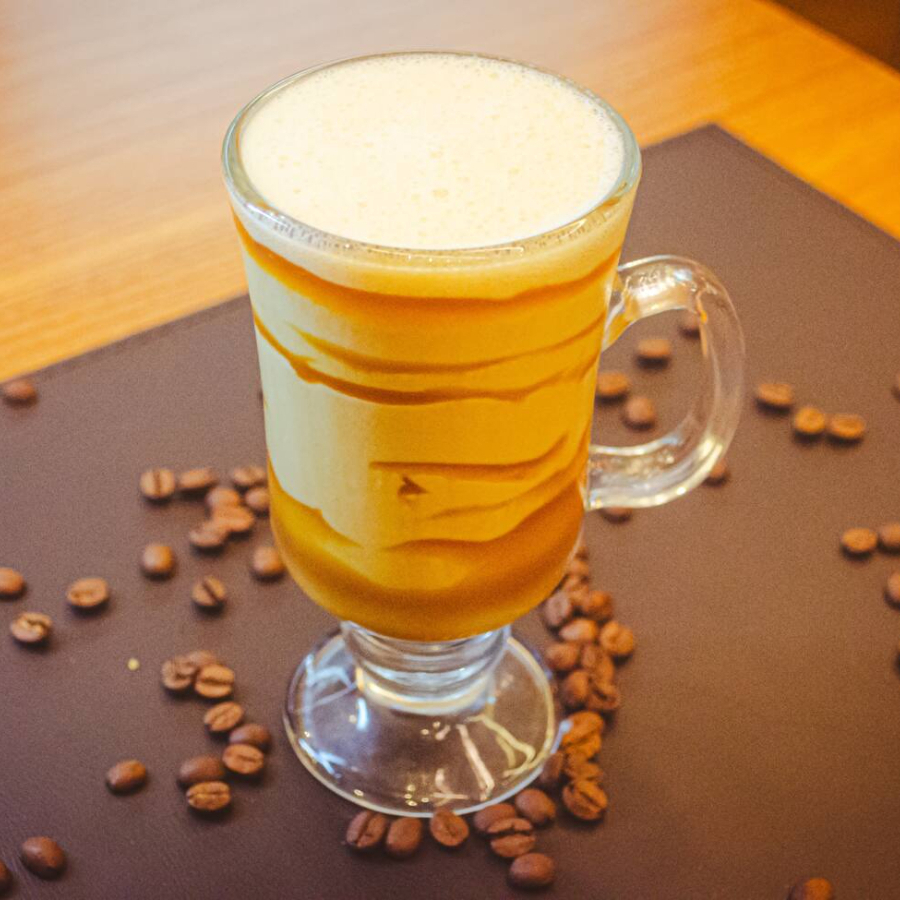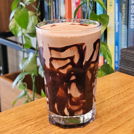 Sorvete de creme, expresso e leite com calda de doce de leite argentino ou chocolate.