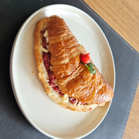 Nossa deliciosa e leve massa de croissant recheada com queijo mussarela e presunto.