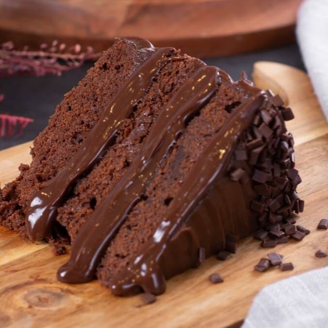 Bolo de chocolate belga 100% cacau com brigadeiro de chocolate 50%.