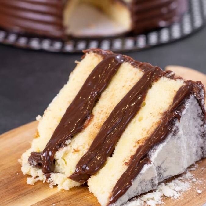 Bolo de leite Ninho com brigadeiro de chocolate 50% e Brigadeiro de Nutella.