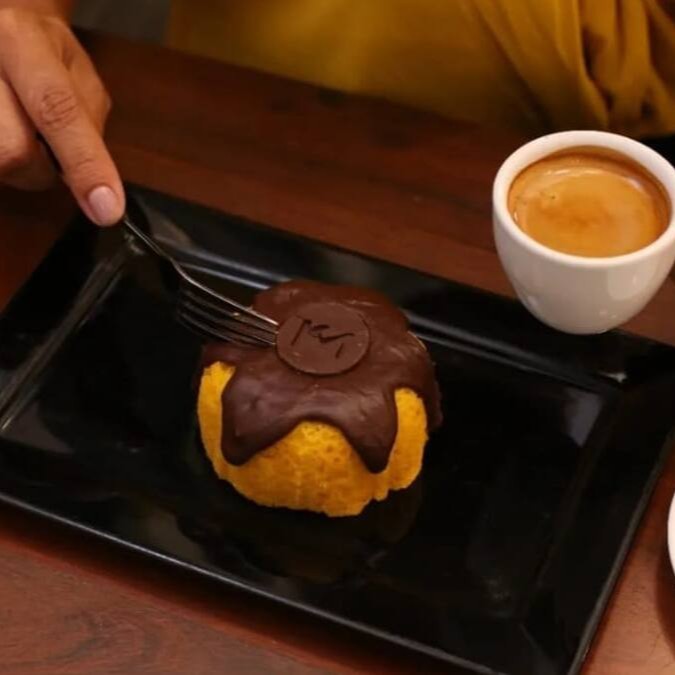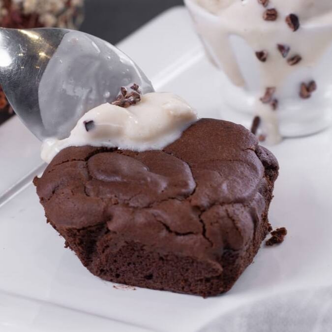 Cacau 100%, leite vegetal, adoçado com xilitol, ovos e manteiga ghee