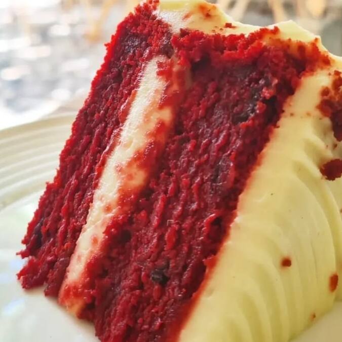 Bolo Red Velvet de Frutas vermelhas com Frosting de cream cheese.
