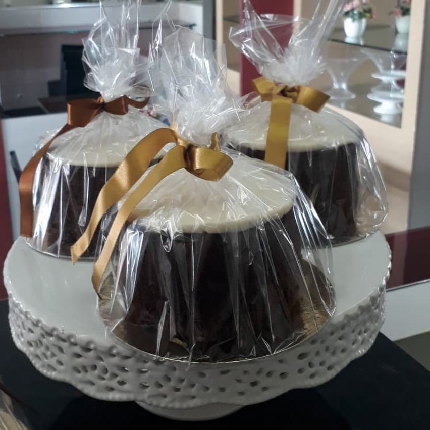 Mini bolo de noiva, com massa tradicional que leva vinho, passa, fruta e ameixa, tudo pesando 600g