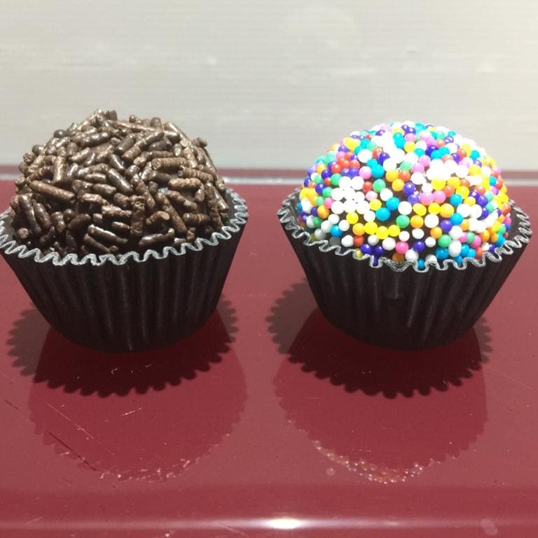 5 brigadeiros, podendo ser com granulado preto ou com missanga colorida.