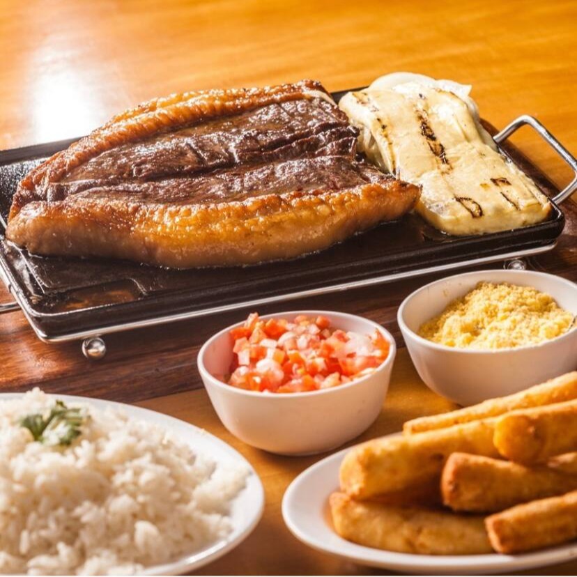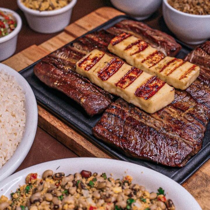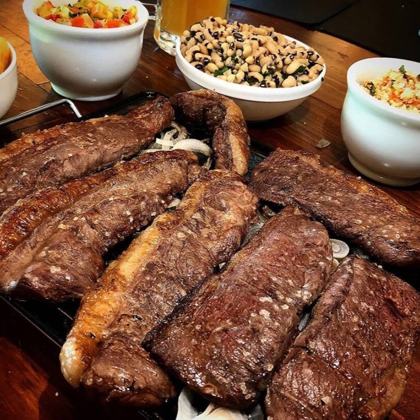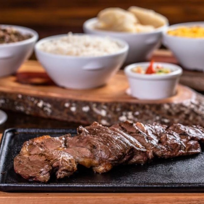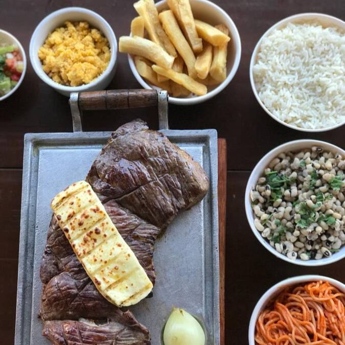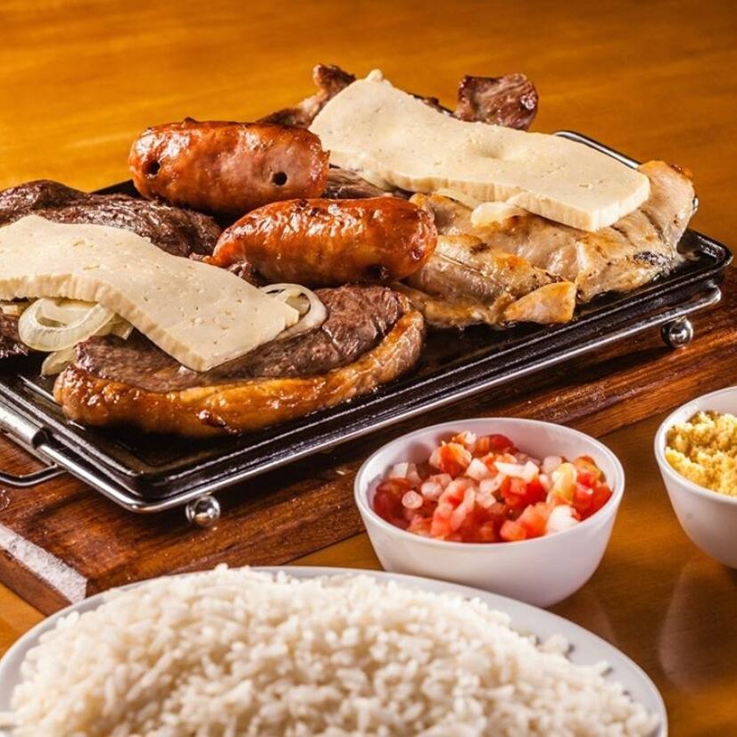 Maminha,carne de sol,frango,porco, contra filé,toscana ,queijo coalho. Acompanha feijão, arroz, farofa de ovo, vinagrete e macaxeira frita