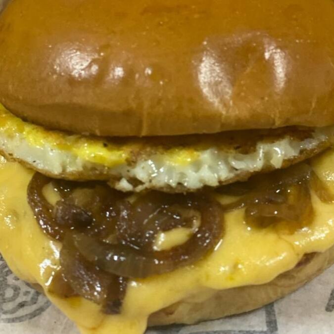 Pão tipo brioche, blend de carne 80g, queijo prato, ovo, cebola ao m.shoyu e maionese da casa.