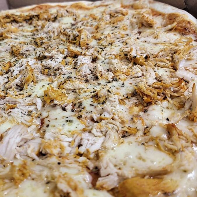 molho, mussarela, frango desfiado, catupiry e orégano.