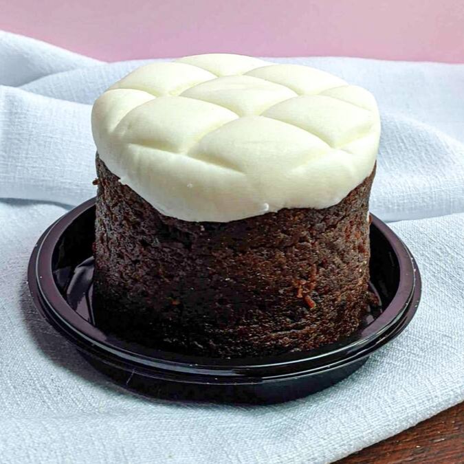 Mono porção de massa de frutas cristalizadas, ameixa, vinho, chocolate e cobertura com açúcar de confeiteiro