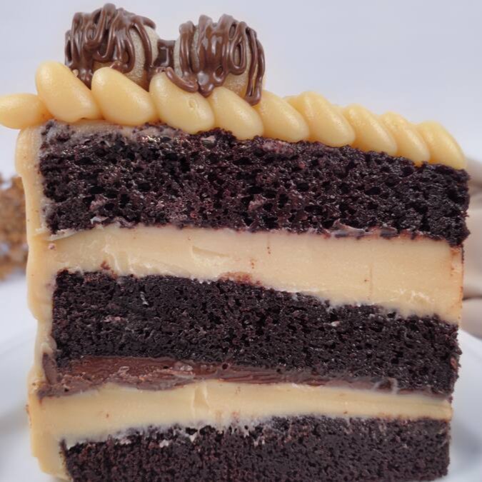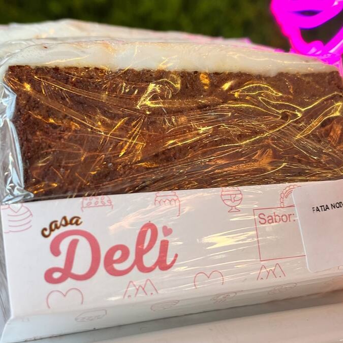 Fatia de massa de chocolate, recheio galack, Nutella e docinho de Ninho