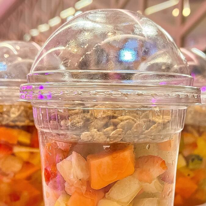 Salada de morango, melão, kiwi, mamão, manga, uva verde e granola