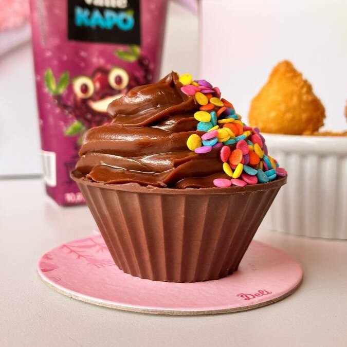 3 opções de cupcakes com casquinha de chocolate: Oreo, brigadeiro e kids