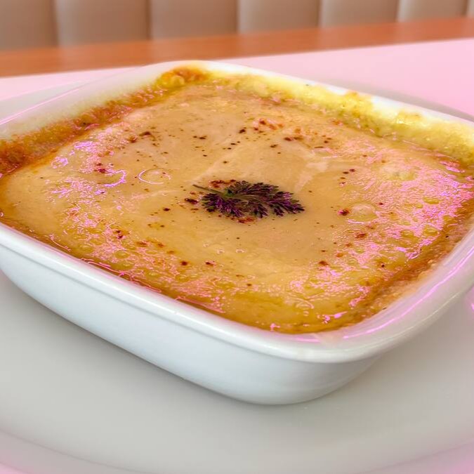 Creme de macaxeira, mussarela, queijo do reino maçaricado disponíveis nos sabores de camarão e charque