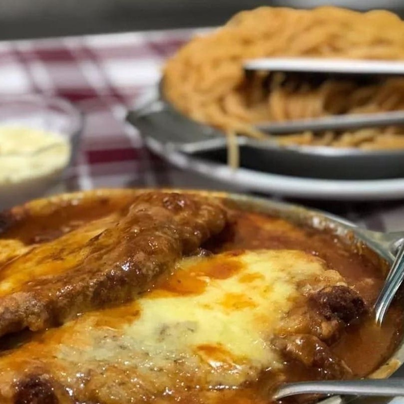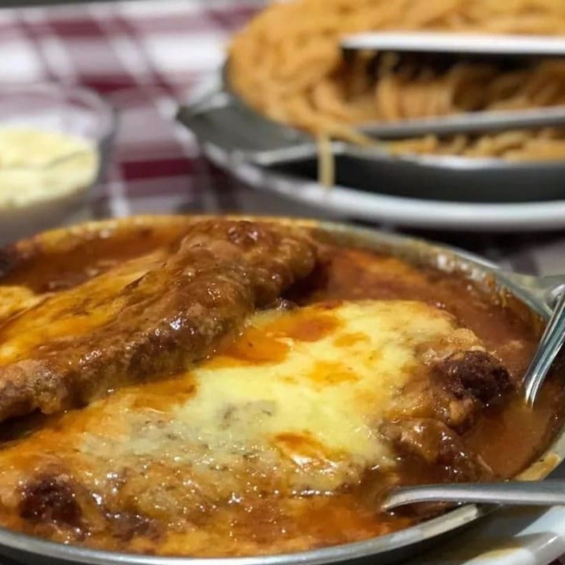 3 pedaços de bife empanado e frito, gratinado no maçarico com muçarela deliciosa e molho de tomate especial. Acompanha: Espaguete ao molho suculento.