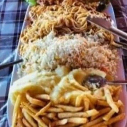 Acompanha: Espaguete e fritas.