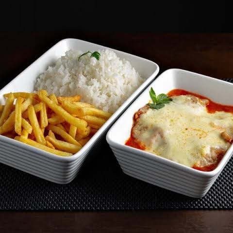 3 pedaços de suculento filé de frango empanado e frito, gratinado no maçarico com muçarela deliciosa e molho de tomate especial. Acompanha: Arroz branco soltinho.