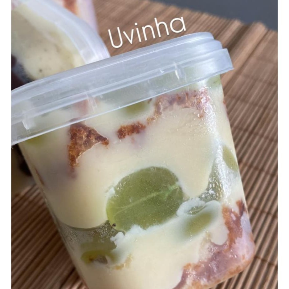Camadas intercaladas do nosso inconfundível creme deleite, pedaços de bolo de Ninho e uvas frescas fatiadas. Indicamos o consumo imediato! Frutas frescas tendem a dessorar em contato com açúcar, mantenha sob refrigeração.