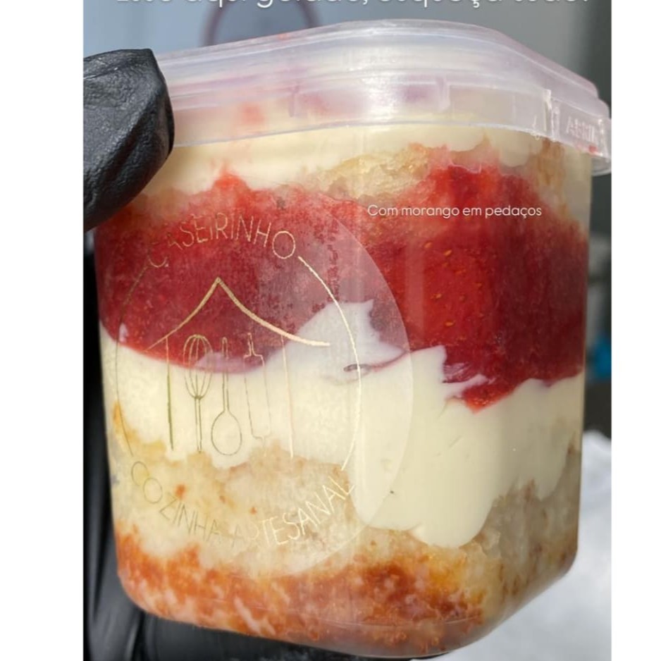 Camadas intercaladas do nosso inconfundível creme deleite, pedaços de bolo de Ninho, morangos frescos em fatias e geleia de morango.Indicamos o consumo imediato! Frutas frescas tendem a dessorar em contato com açúcar, mantenha sob refrigeração.