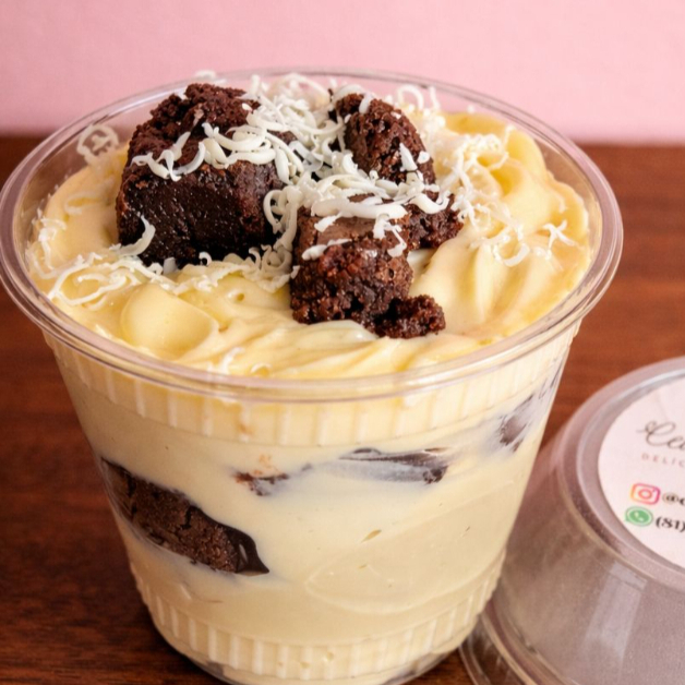 Delicioso copo da felicidade com recheio de ninho e acompanhado de lascas de brownie. 200ml.