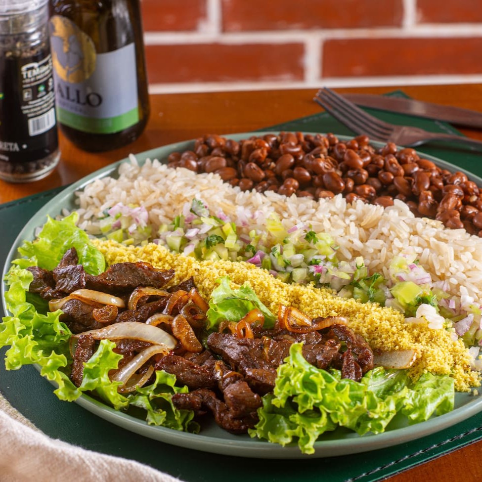 O segundo prato mais vendido do nosso restaurante. Nossa carne de sol em cubos ou iscas, acompanhado de feijão de corda amanteigado, arroz refogado, farofinha acebolada e vinagrete.