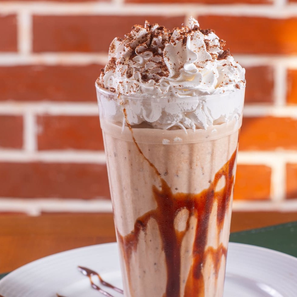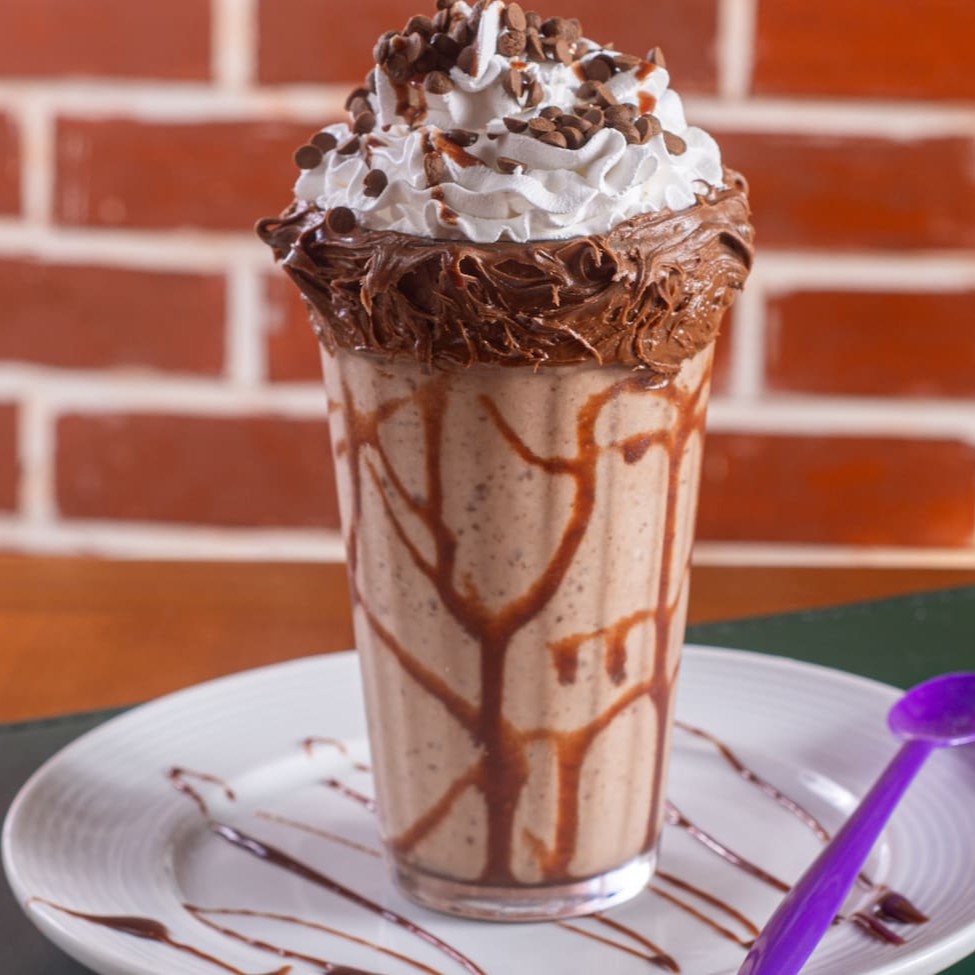 Milkshake de Ovomaltine com chantilly de leite Ninho. Enviado em copo térmico, para garantir uma melhor textura.