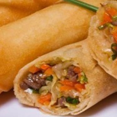 Delicioso rolinho com massa crocante e recheio de carne e legumes.