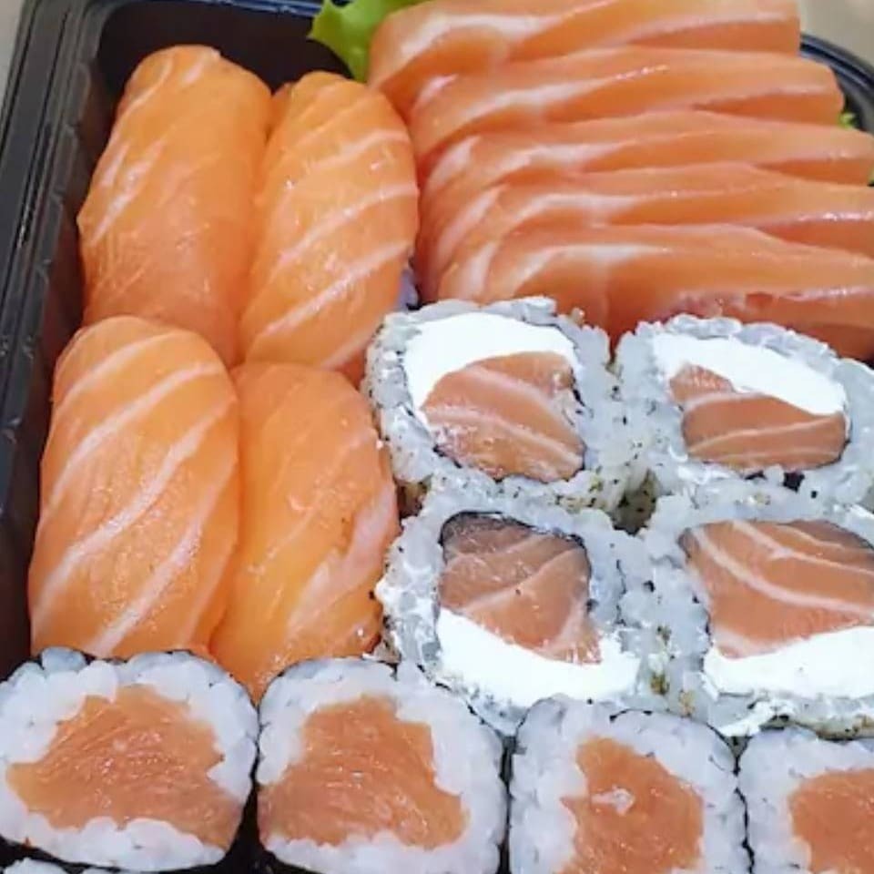 Descubra o prazer de saborear nosso irresistível combo especial abundante de salmão fresco! Delicie-se com a explosão de sabor do nosso tempero exclusivo do chef. Perfeito para dividir com alguém especial, Inclui: 4 Niguiri Salmão 12 Uramaki Salmão 6 Hossomaki Salmão 5 Sashimi de Salmão Surpreenda o seu paladar!