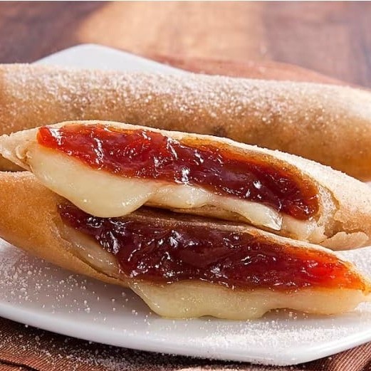Delicioso rolinho com massa crocante e recheio de queijo com goiabada.