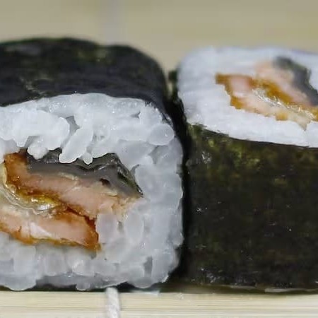 Arroz enrolado por dentro do nori com recheio de kani. 12 Unidades