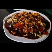 Uma explosão de sabores com macarrão oriental artesanal, carne, frango, acelga e cenoura, tudo envolto em um delicioso molho shoyu.