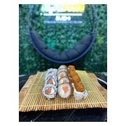 10 CARIOCAS DE PASTA DE SALMAO 10 URAMAKI DE CAMARAO 10 HOSSOMAKI DE KANI Acompanha: 3 Molho Shoyu 8ml , Molho Tarê 1 teriaki 30ml e 2 Hashi.