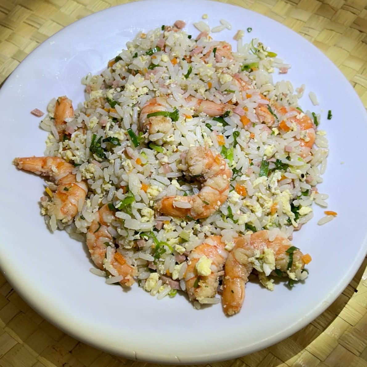 O melhor dos dois mundos no seu prato! Camarões selecionados e suculentos em uma base de arroz chop suey super temperadinha com legumes picados e ovos, transformada em um risoto cremoso e muito saboroso. Prato bem servido e quentinho