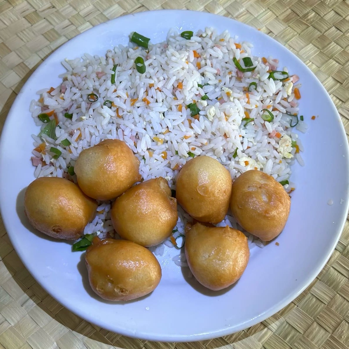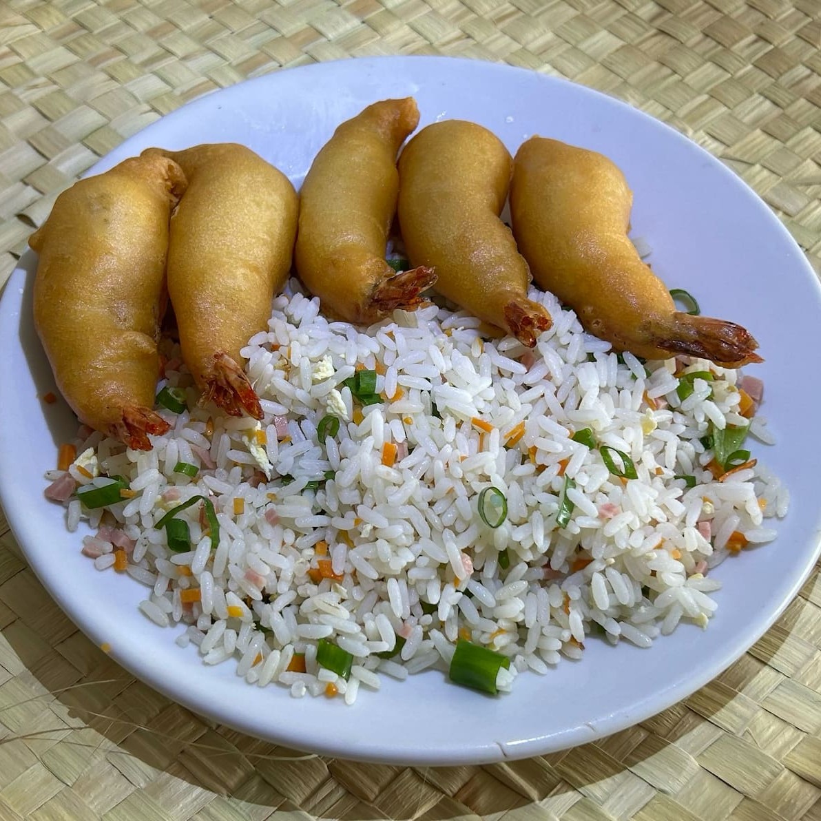 Camarões selecionados empanados e fritos. Crocantes, dourados e muito bem temperados. Acompanha arroz shop suey