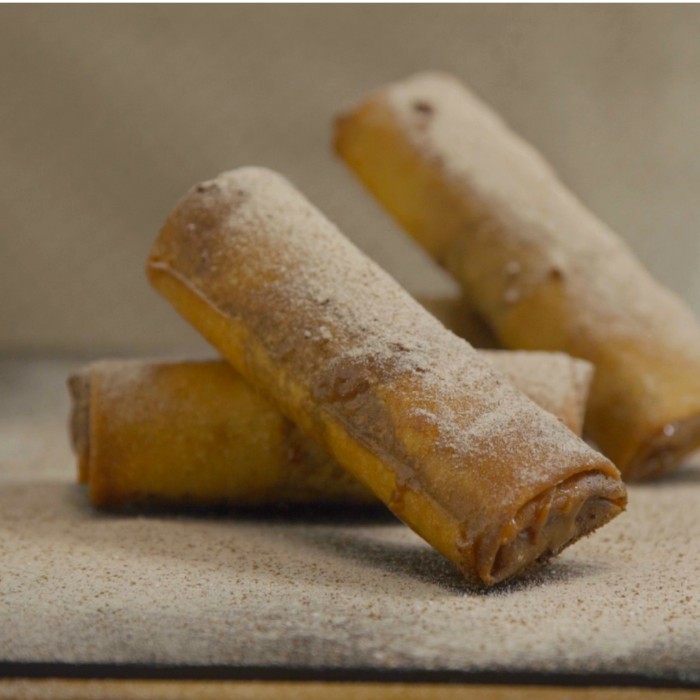 Delicioso rolinho de massa de harumaki recheado com maravilhoso doce de leite e finalizado com açúcar por fora. Crocante e gostoso. 1 unidade.