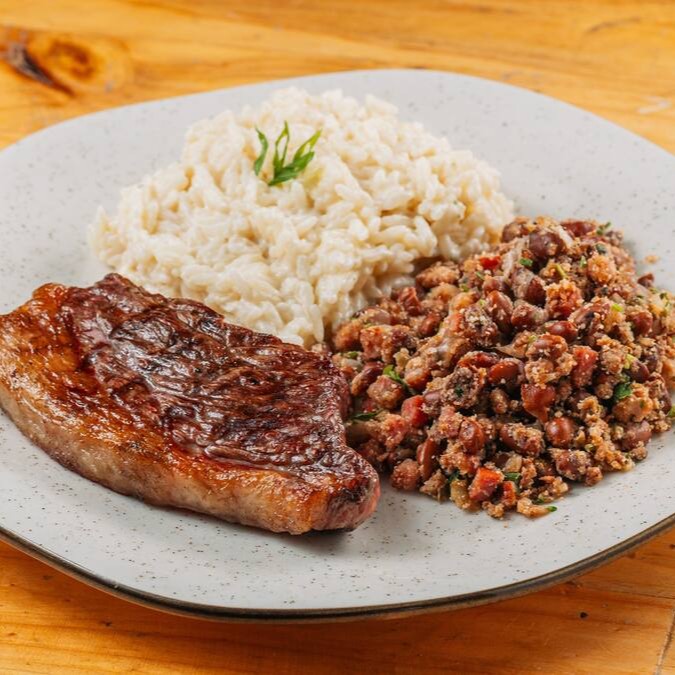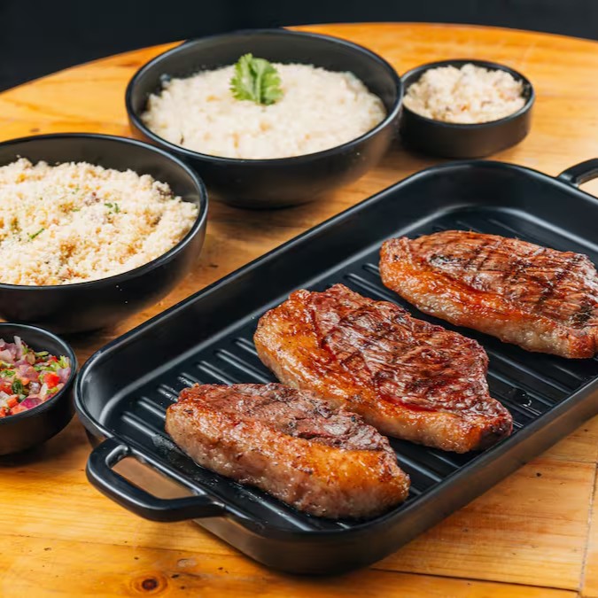 Bife de chorizo grelhado na parrilla + 3 acompanhamentos.
