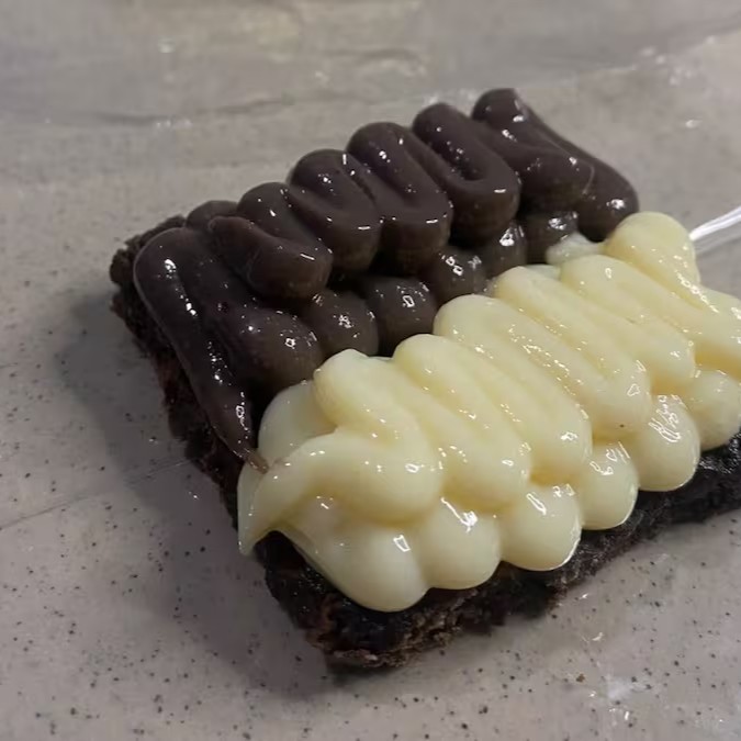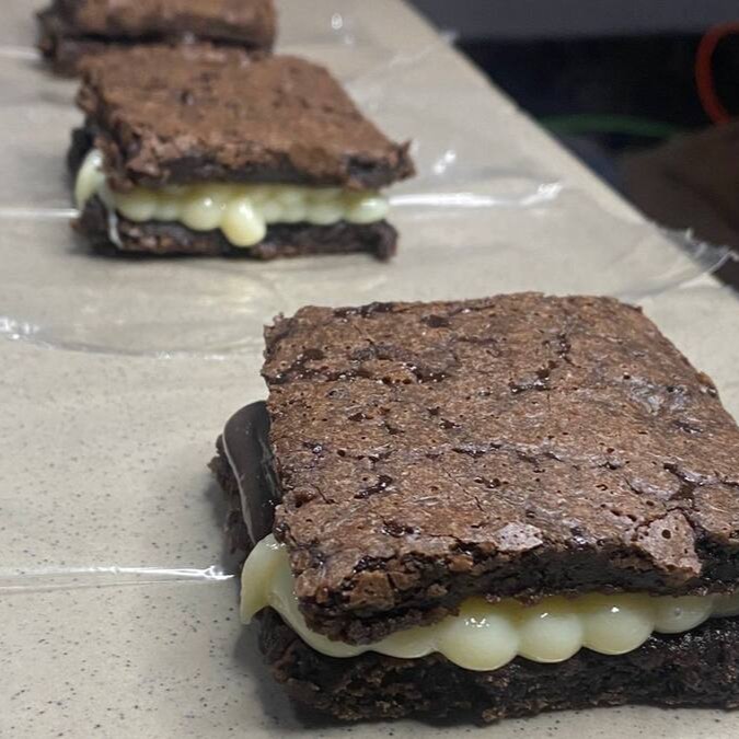Brownie com uma camada generosa de Brigadeiro de chocolate, feito com cacau 50% e um Toque especial. Uma combinação perfeita!
