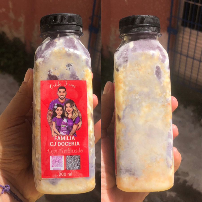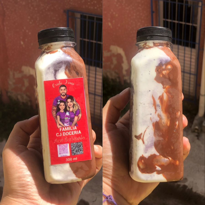 Açaí Artesenal na Garrafa com a Combinação Perfeita de Paçoca com Açai e uma Camada Generosa de Leite Condensado uma Explosão de Sabor a cada Gole, com aquela Cremosidade irresistível!